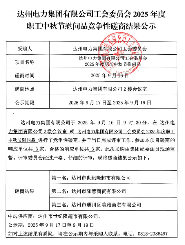 tapplay集团有限公司工会委员会2025年职工中秋节慰问品竞争性磋商结果公示