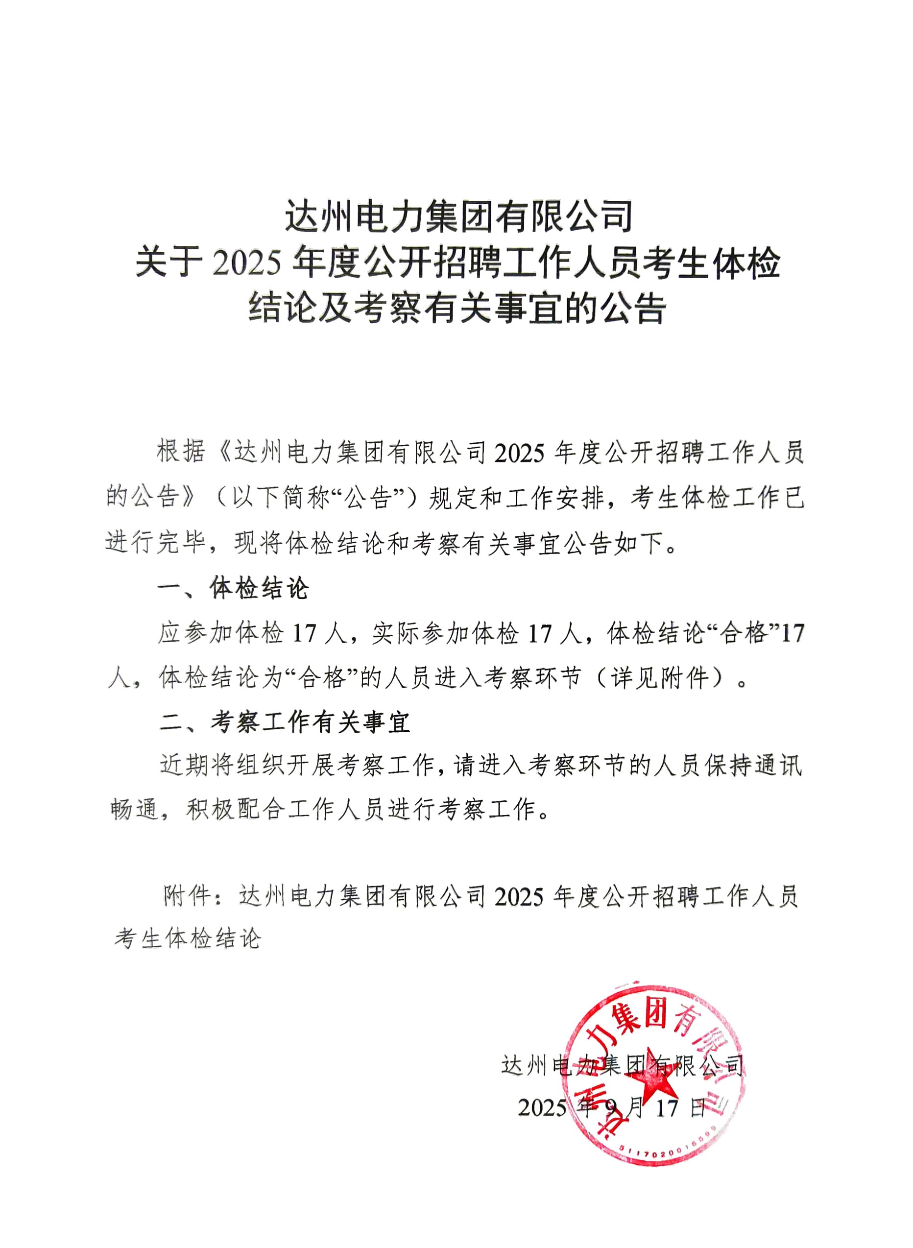 tapplay集团有限公司关于2025年度公开招聘工作人员考生体检结论及考察有关事宜的公告