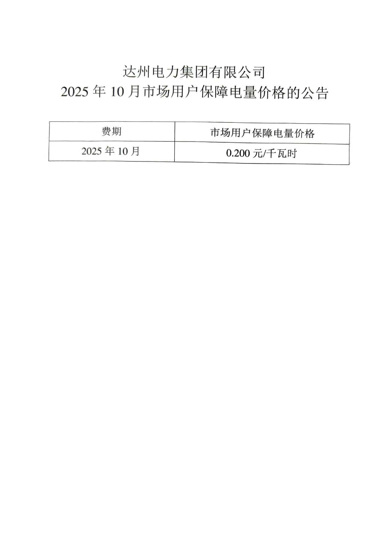 tapplay集团有限公司2025年10月市场用户保障电量价格的公告