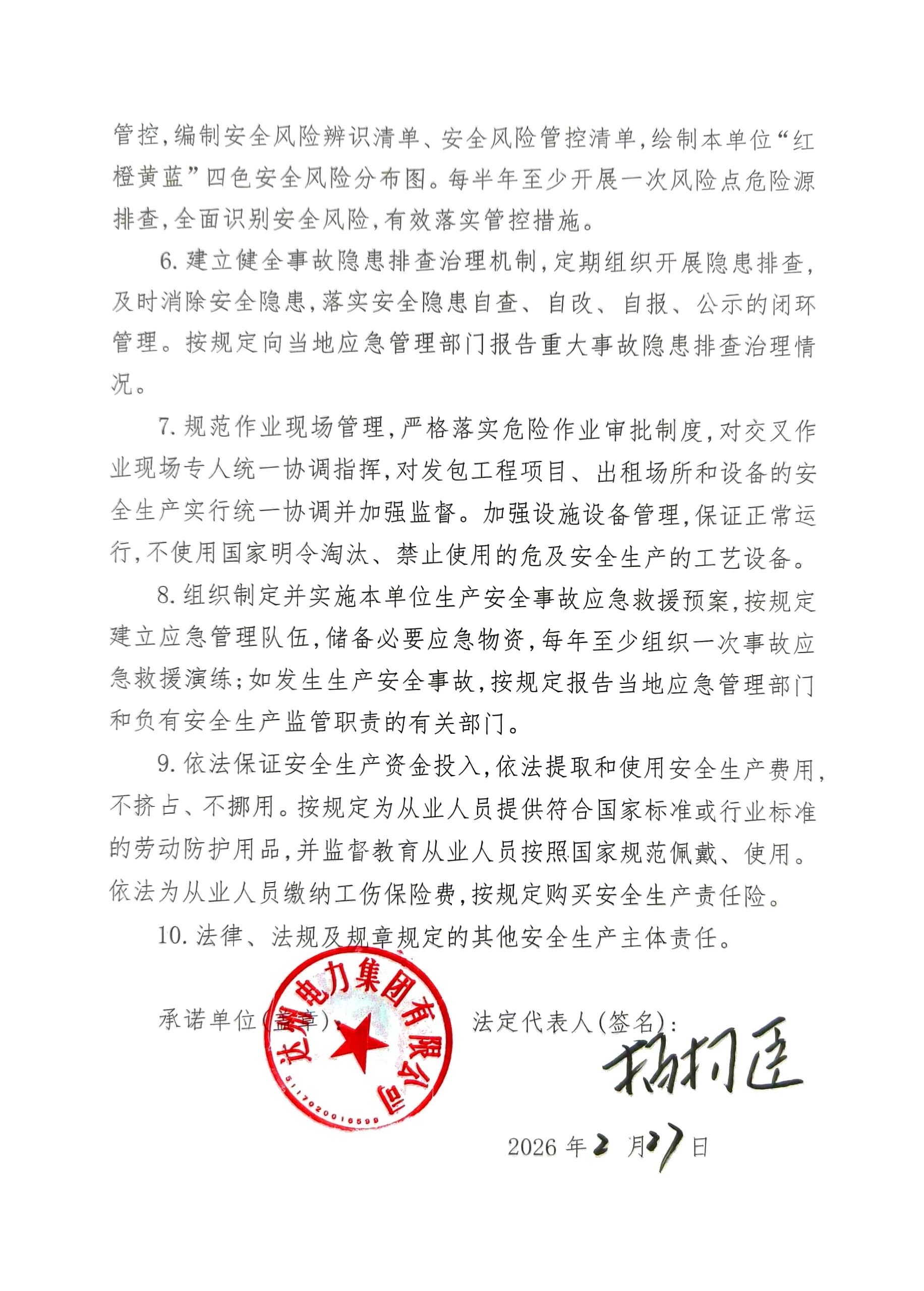 tapplay集团有限公司2026年安全生产主体责任承诺清单